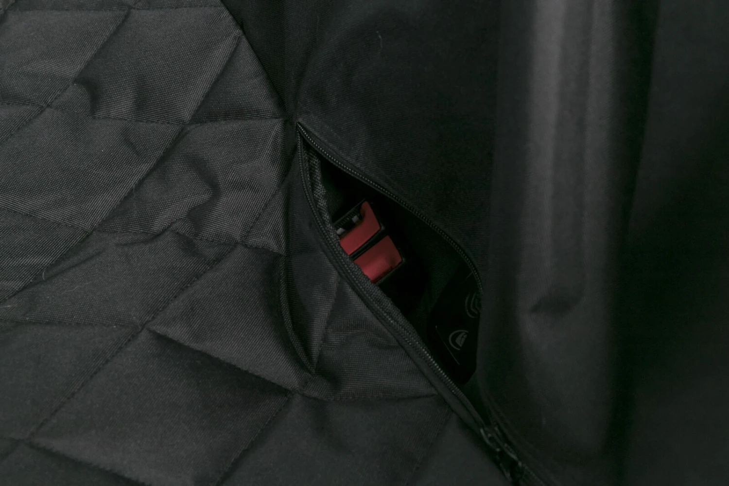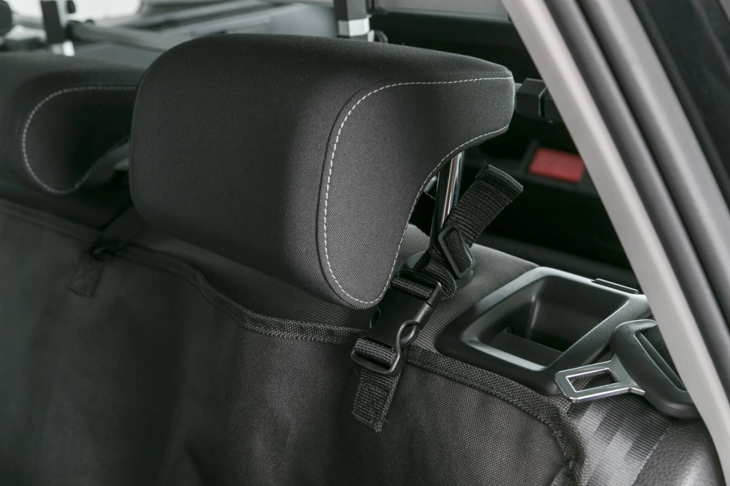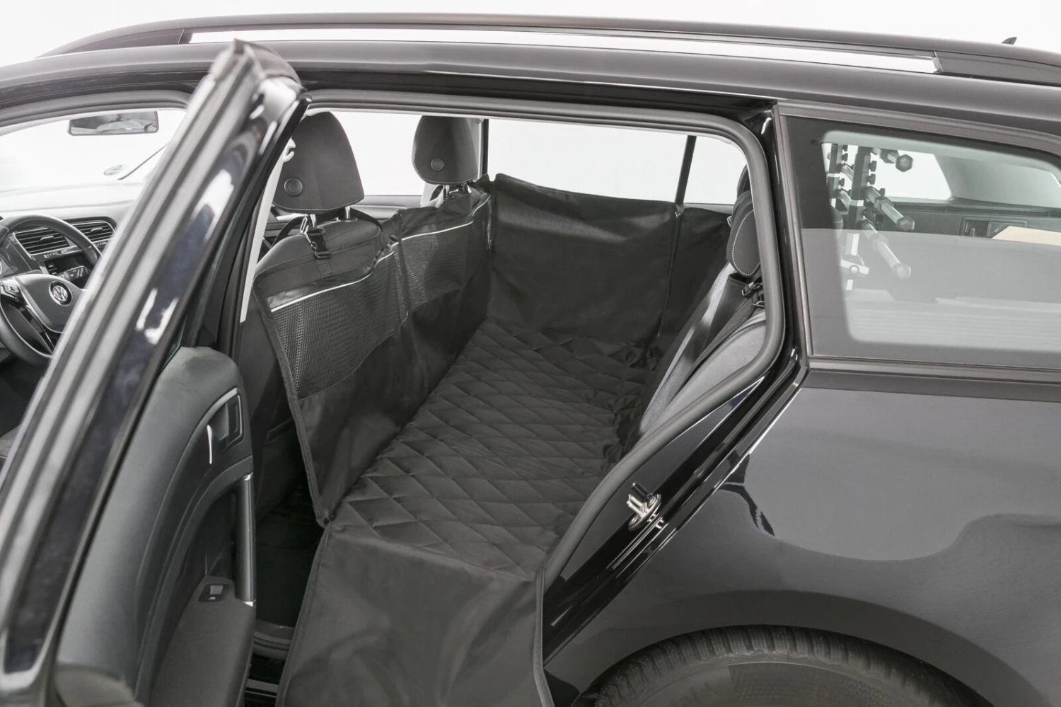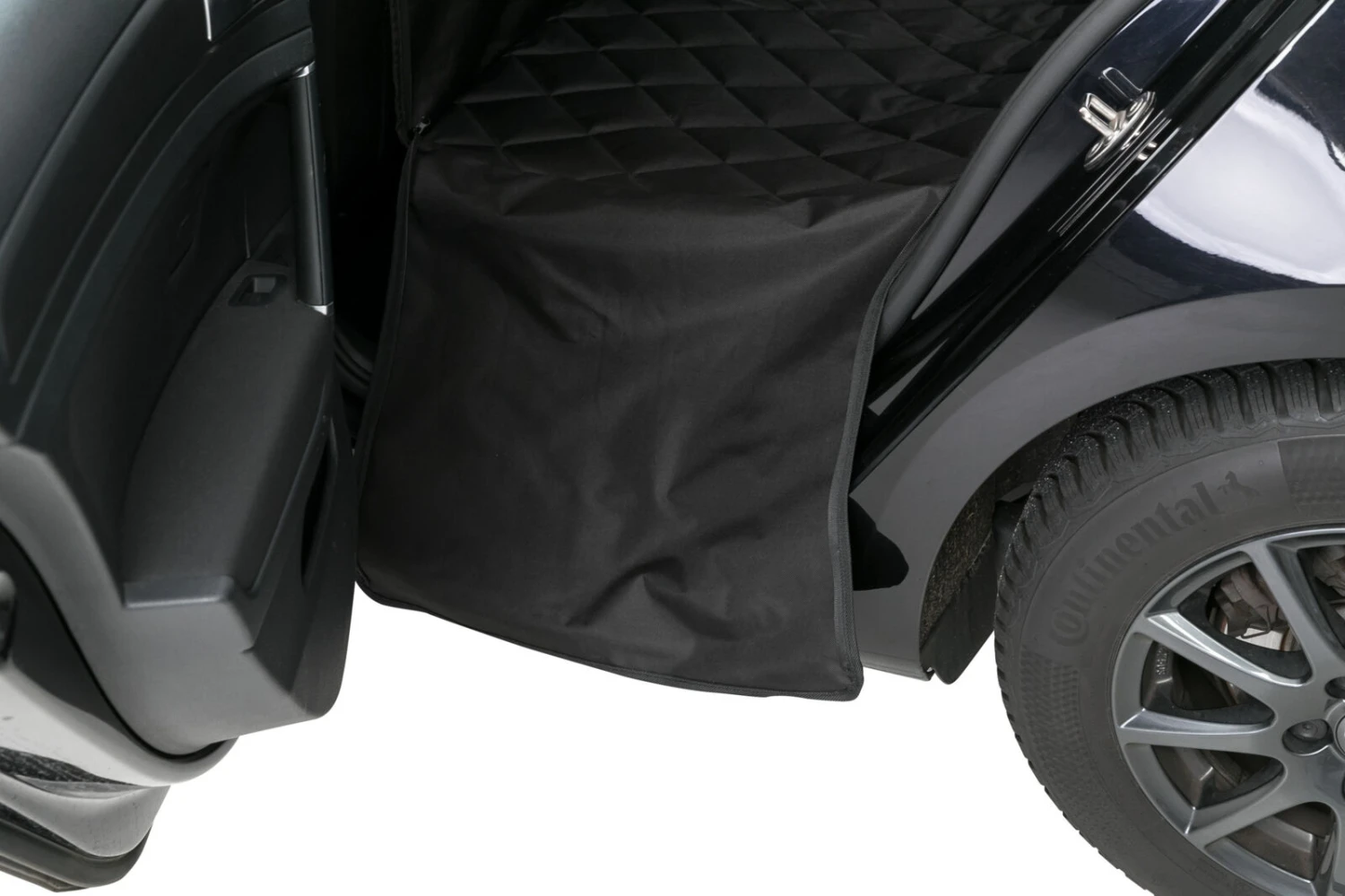 - Seitenteile können zum Ein- und Aussteigen durch zwei Reissverschlüsse heruntergeklappt werden und schützen so Polster und Verkleidungen