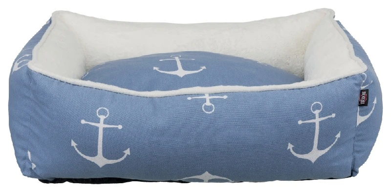 Kuscheliges Hundebett mit Anker- Motiv für Hunde – Grundfarbe Nebelblau