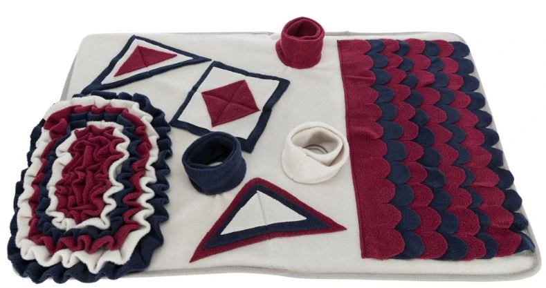 Schnüffelteppich mit unterschiedlichen Stationen der Futteraufnahme. Die Leckerlies können ganz einfach in den einzelnen Station versteckt werden.