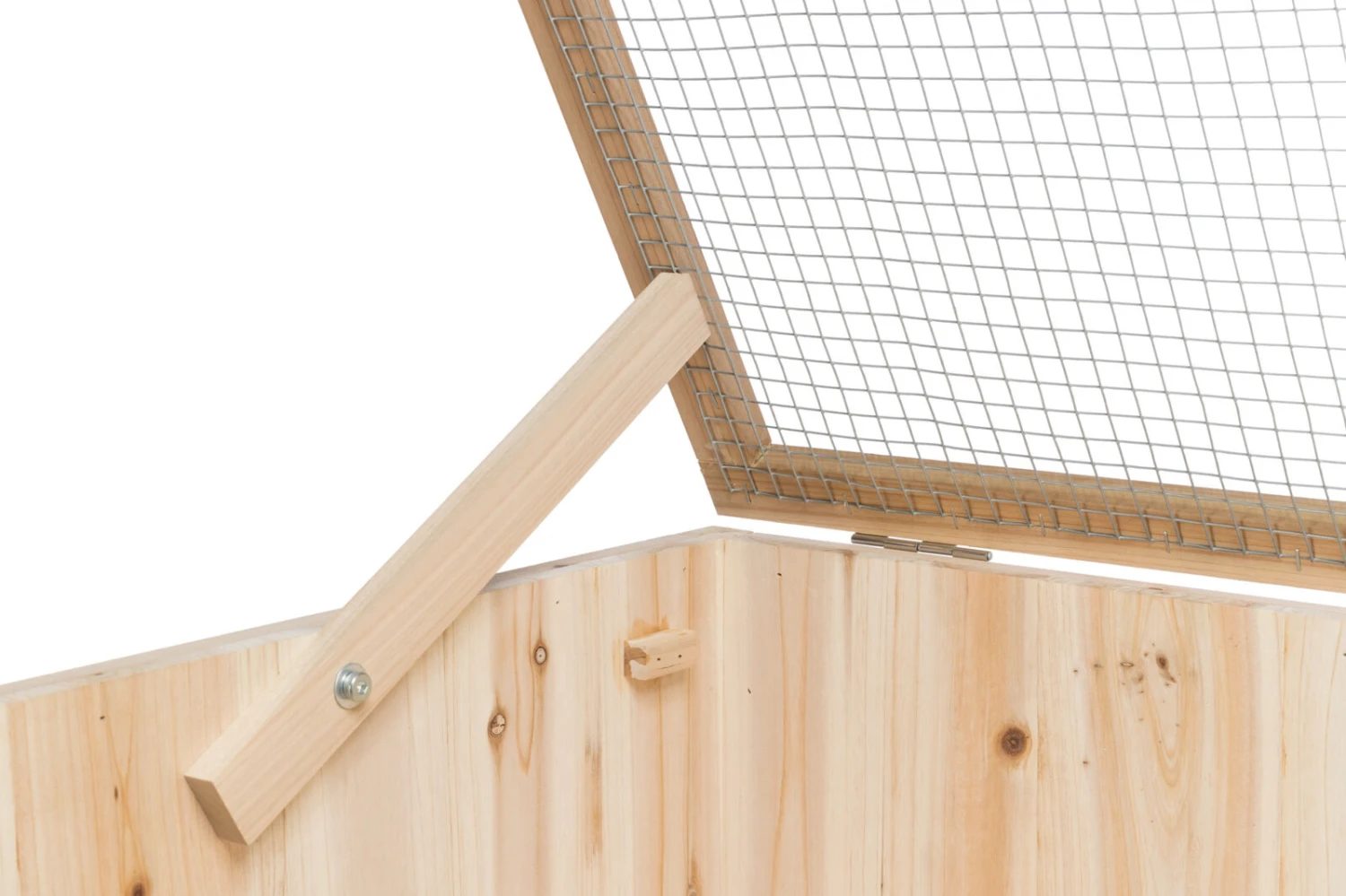 Das Nagerheim bietet Ihren Mäusen oder Ihrem Hamster ein tolles Zuhause. Dank der bereits eingebauten Etagen kann man dieses Nagerheim nach Belieben einrichten. Das untere Frontelement ermöglicht eine extra hohe Einstreu Auffüllung. Das obere Frontelement kann geöffnet werden, um das Putzen und Füttern so einfach wie möglich zu machen. Der Deckel kann oben geöffnet und wieder verschlossen werden.