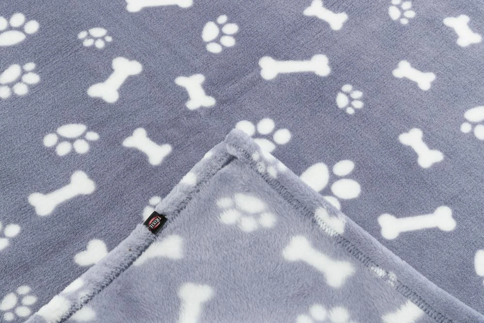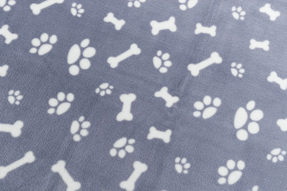Hundedecke Kenny in blau mit Motiven. Die Decke ist bei 60 °C waschbar und dadurch besonders für Allergikerhunde geeignet. Die hohe Waschtemperatur sorgt für eine bessere Entfernung von Hautschuppen, Pollen und Hausstaubmilben.