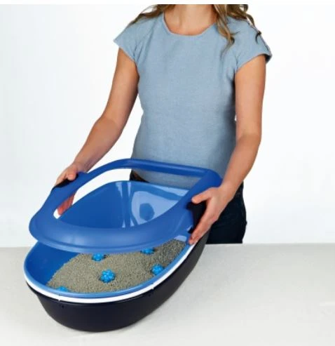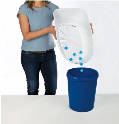 Die Katzentoilette Berto macht das Reinigen schnell und einfach. 2 Schalen und 1 Sieb für schnelles und einfaches Reinigen der Toilette