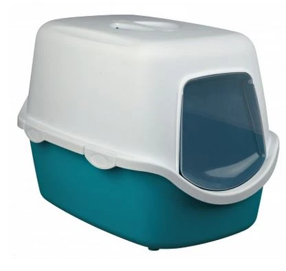 Katzentoilette Vico in Türkis und Weiß mit den Maßen ca.: 40x40x56cm