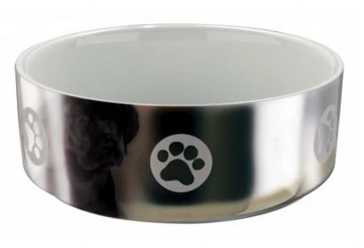 Keramiknapf in edler Chromoptik mit Pfotenmotiv