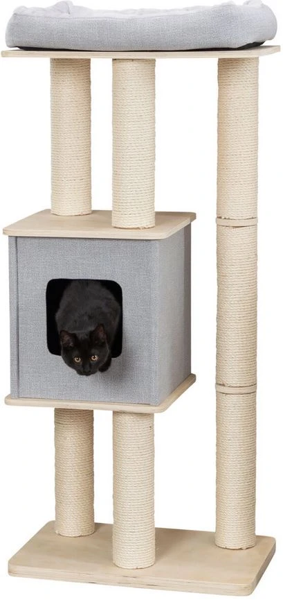 Stabilität. Der Katzenbaum präsentiert sich in einem modernen Grauton,