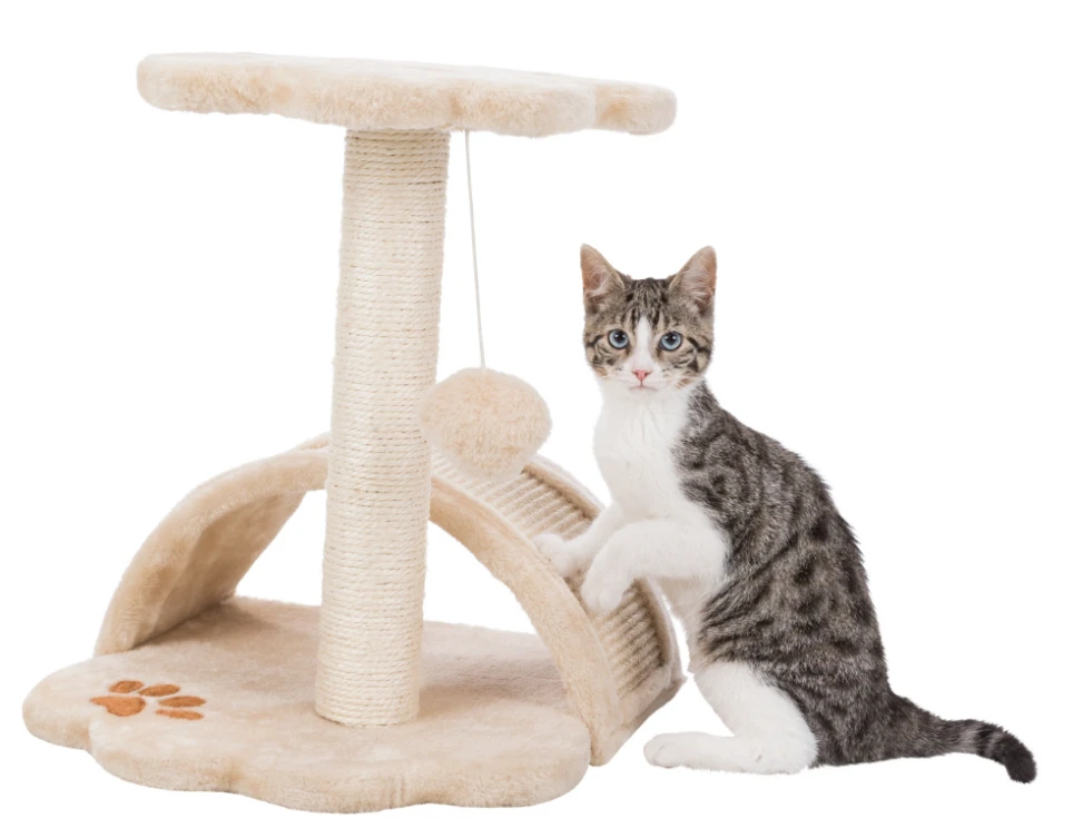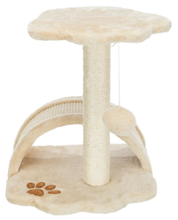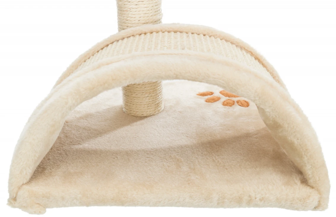 Kratzbaum mit extravaganter Kratzfläche in Bogenform. Kuschelig mit Plüschbezug. Das klassische beige passt sich in nahezu jede Wohnsituation ein.