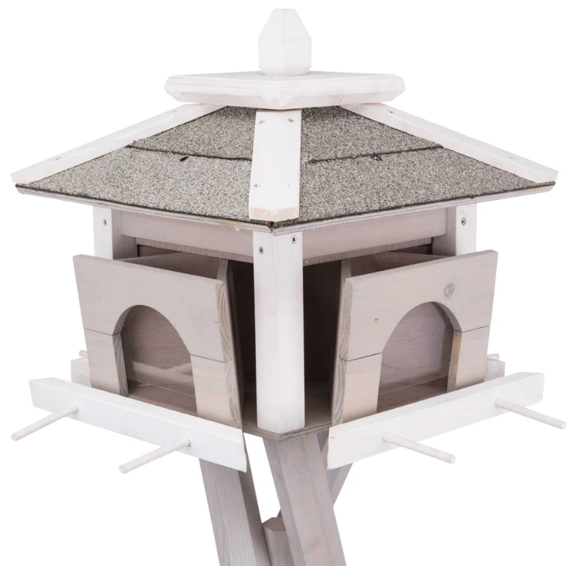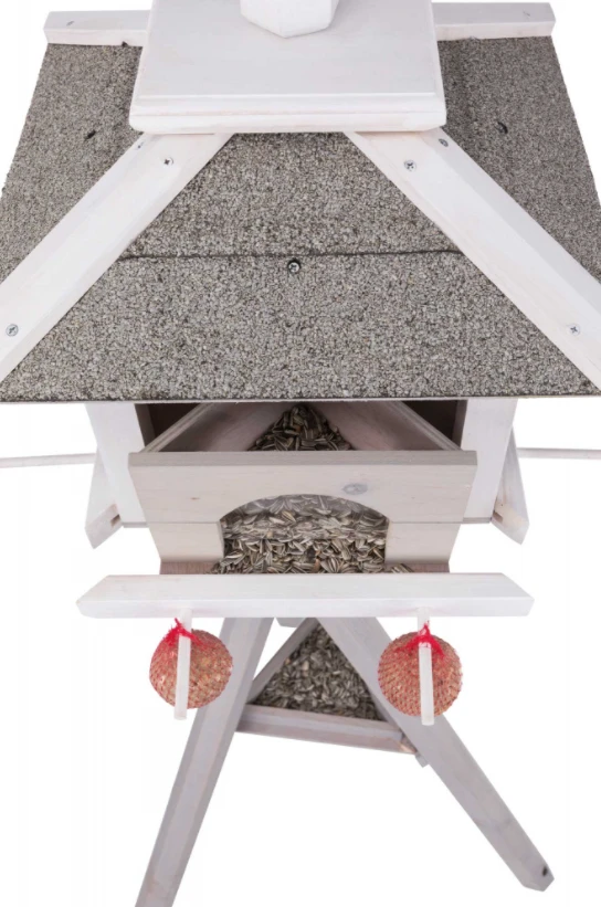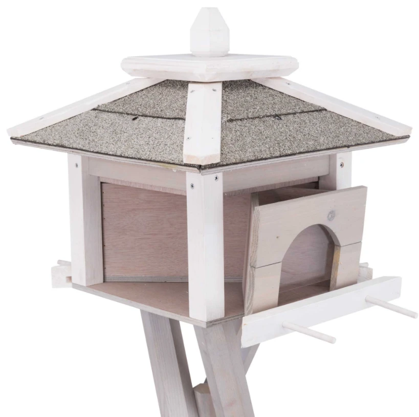 TRIXIE Futterhaus mit Ständer mit 4 herausnehmbaren Futterkammern, die das Futter sauber und trocken halten.