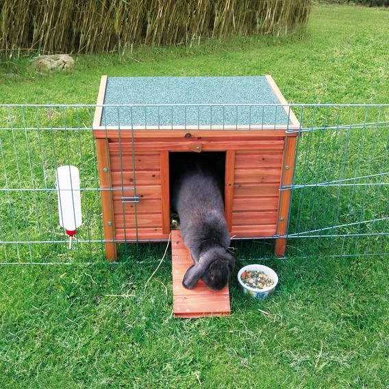 Dieses grosse Kleintierhaus eignet sich besonders gut für die Benutzung im Garten. Das Haus hat eine verschliessbare Türklappe. Die extra hohen Füsse schützen vor Bodenfeuchtigkeit und -kälte und sorgen für eine gute Luftzirkulation unterhalb des Hauses. Das Dach kann von oben geöffnet werden. Die spezielle Dachbeschichtung und das lasierte Kiefernholz sind winter- und wasserfest. Die Montage ist schnell und einfach.