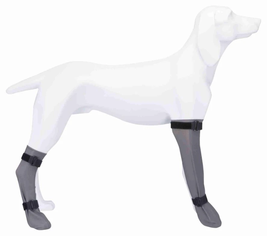 - Größenbestimmung: Messen Sie am stehenden Hund die breiteste Stelle der Pfote (Verbände berücksichtigen). Die Schutzsocke sollte ca. 1 cm breiter sein.